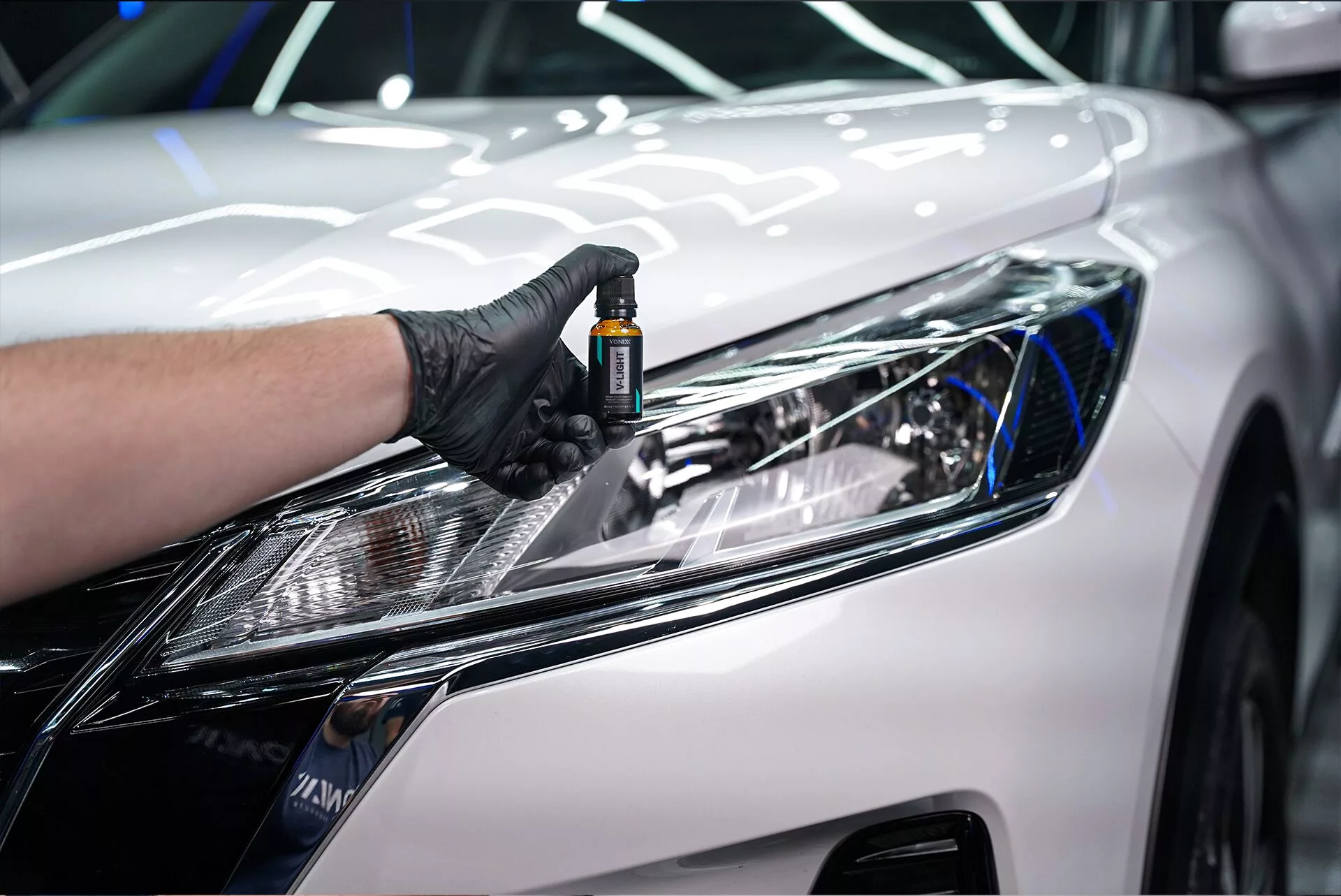 Představujeme V-Light, vysoce výkonný povlak na bázi oxidu křemičitého speciálně navržený pro obnovu polykarbonátových světlometů ovlivněných časem a oxidací. Tento produkt vytváří polopružný skelný film výjimečné průhlednosti a odolnosti. Odolává teplotním změnám a dilatacím, kterým čelí polykarbonátové světlomety, zabraňuje praskání nebo novému žloutnutí.