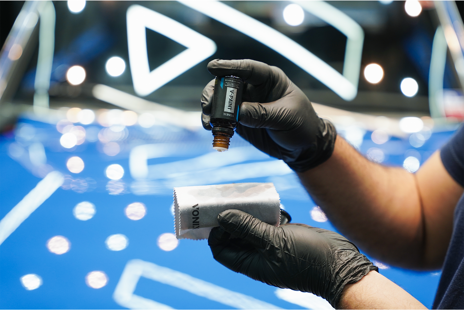 V-PAINT je keramický povlak na lak s trvanlivostí až 2 roky, vyvinutý s molekulami křemíku, které pokrývají povrch vozidla a tvoří vysoce odolnou nanotechnologickou bariéru. V-PAINT zajišťuje vodoodpudivost, UV ochranu a hluboký lesk. Nanofilm vytvořený na laku minimalizuje škodlivé účinky mízy stromů, ptačího trusu, slunečního záření, mořské mlhy, kyselých dešťů a dokonce i mikroškrábanců způsobených špatně provedeným mytím, čímž zabraňuje předčasnému opotřebení laku.