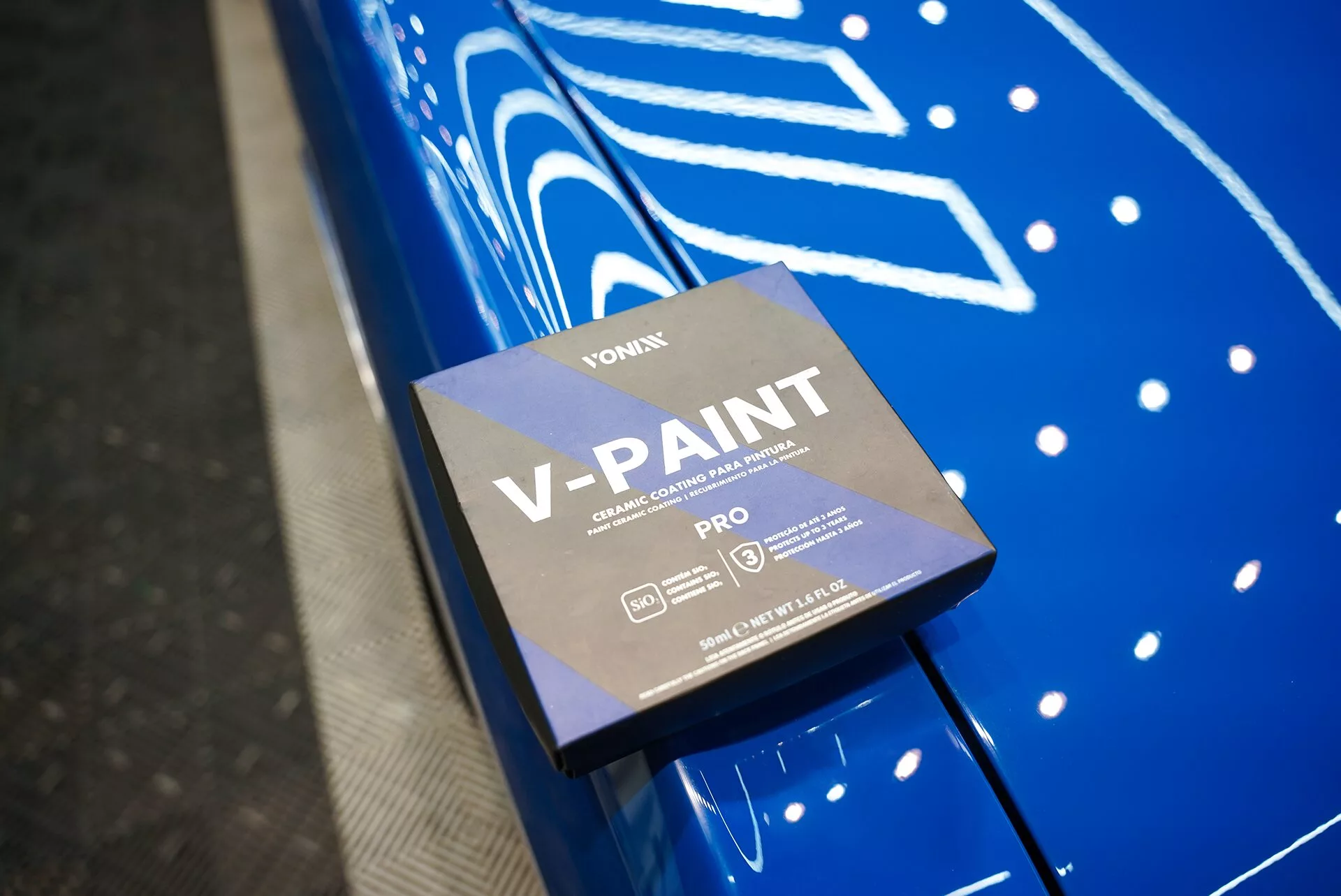 V-PAINT PRO je keramický povlak na lak s trvanlivostí až 3 roky, vyvinutý s molekulami křemíku, které pokrývají povrch vozidla a tvoří vysoce odolnou nanotechnologickou bariéru.